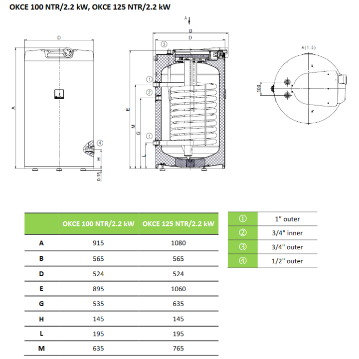 Kombinuotas boileris Dražice OKCE 100NTR 2.2kW